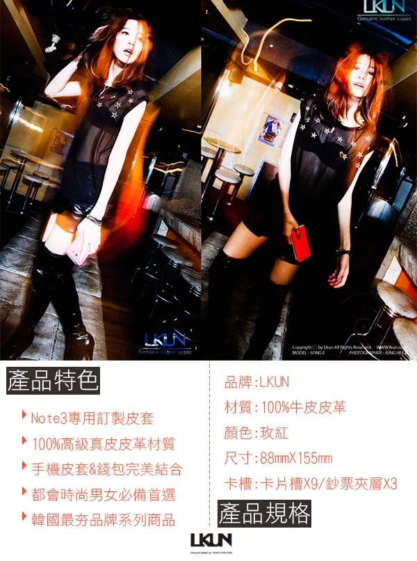 【韓國原裝潮牌 LKUN】Samsung Note3 N900 N9000 專用保護皮套 100%高級牛皮皮套㊣ 多功能多用途手機皮套&錢包完美結合 (玫紅) 評價