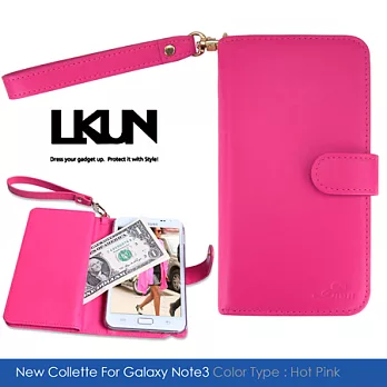 【韓國原裝潮牌 LKUN】Samsung Note3 N900 N9000 專用保護皮套 100%高級牛皮皮套㊣ 多功能多用途手機皮套&錢包完美結合 (玫紅)