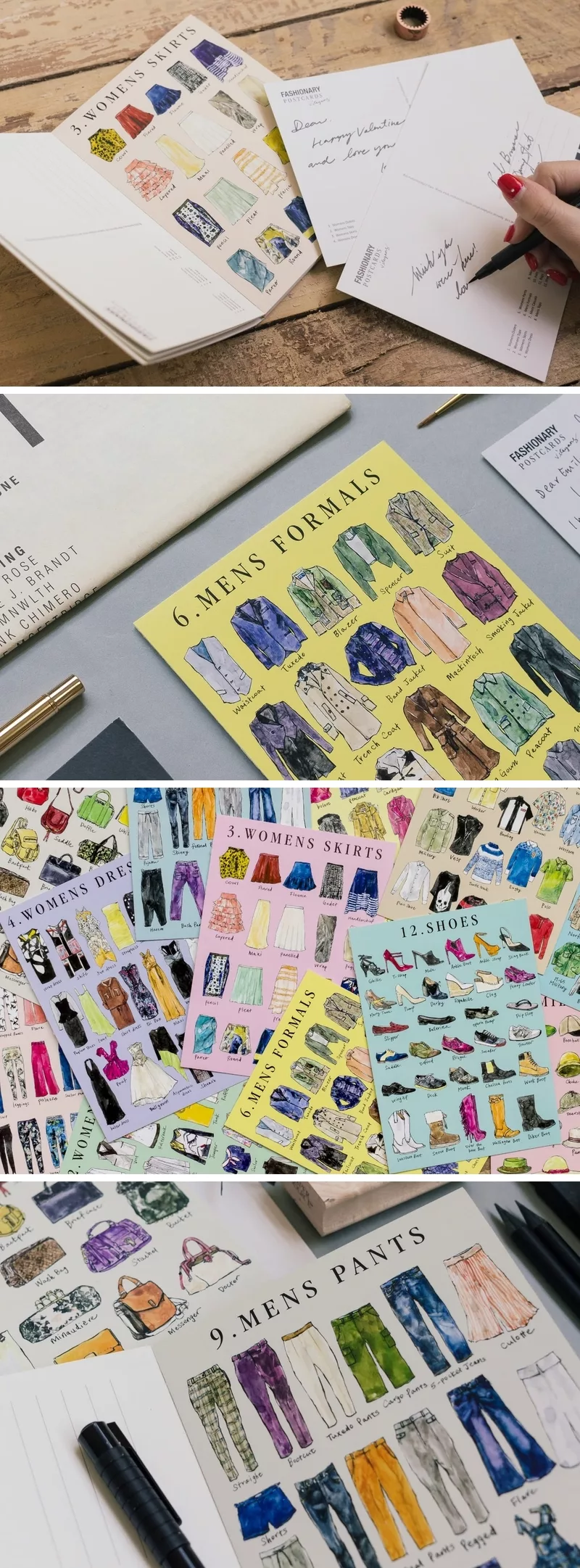 ◆ 12張明信片,每張為服飾或配件圖文說明
